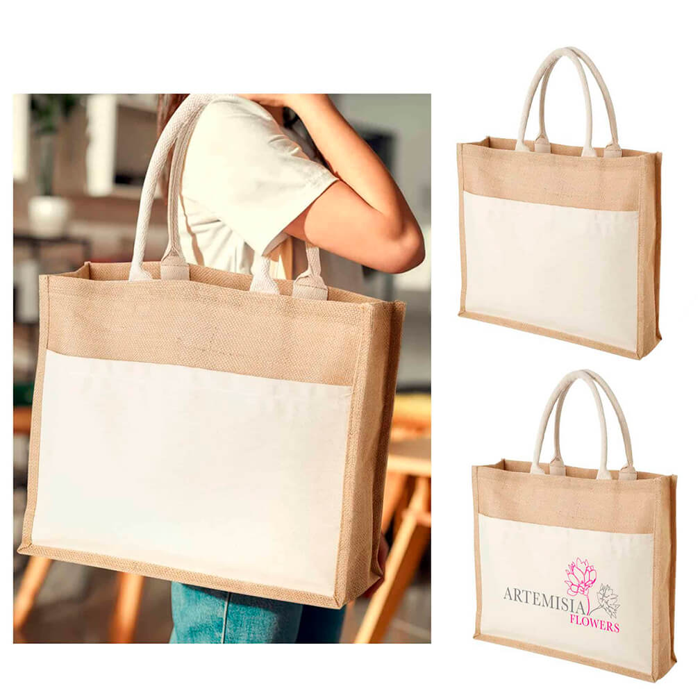 Jutetasken har et stort hovedrum og en frontlomme, så du nemt kan opbevare alle småting. Tasken består af jute og lærred, hvilket betyder, at tasken er et godt valg, når du leder efter en mere bæredygtig shopper taske.
